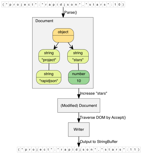 // Output {"project":"rapidjson","stars":11}